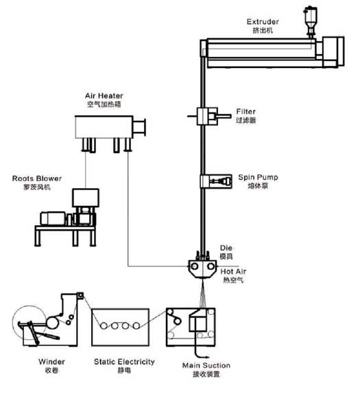 漢諾工業(yè)泵HNP熔體計量泵為國內熔噴無紡布生產企業(yè)提供優(yōu)質的計量、過濾設備。熔噴布生產工藝流程:原材料---->熔融擠出---->過濾---->計量(HNP熔噴布計量泵)---->空氣加熱壓縮---->熔噴---->成網---->收卷。